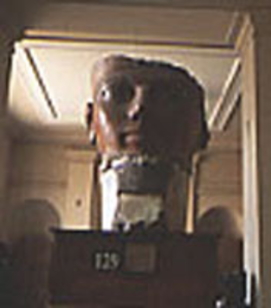 これは、ディール・アル=バハリにある、女王の葬祭殿第3テラスの柱廊を飾る、オシリス神のひとつに冠していたものと思われる。