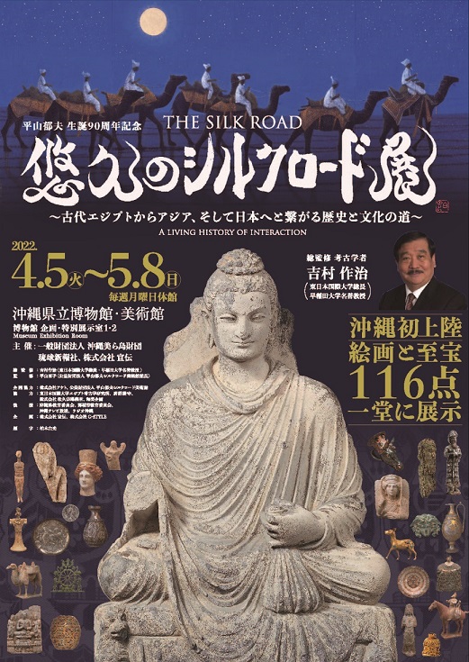 沖縄県立博物館・美術館で吉村作治先生が総監修した「悠久のシルクロード展―古代エジプトからアジア、そして日本へと繋がる歴史と文化の道―」が4/5から開催されます。吉村先生がエジプトで発掘した本物の遺物たち、そして平山郁夫シルクロード美術館から平山画伯の絵画とシルクロードにまつわる様々な遺物が一堂に展示されます。